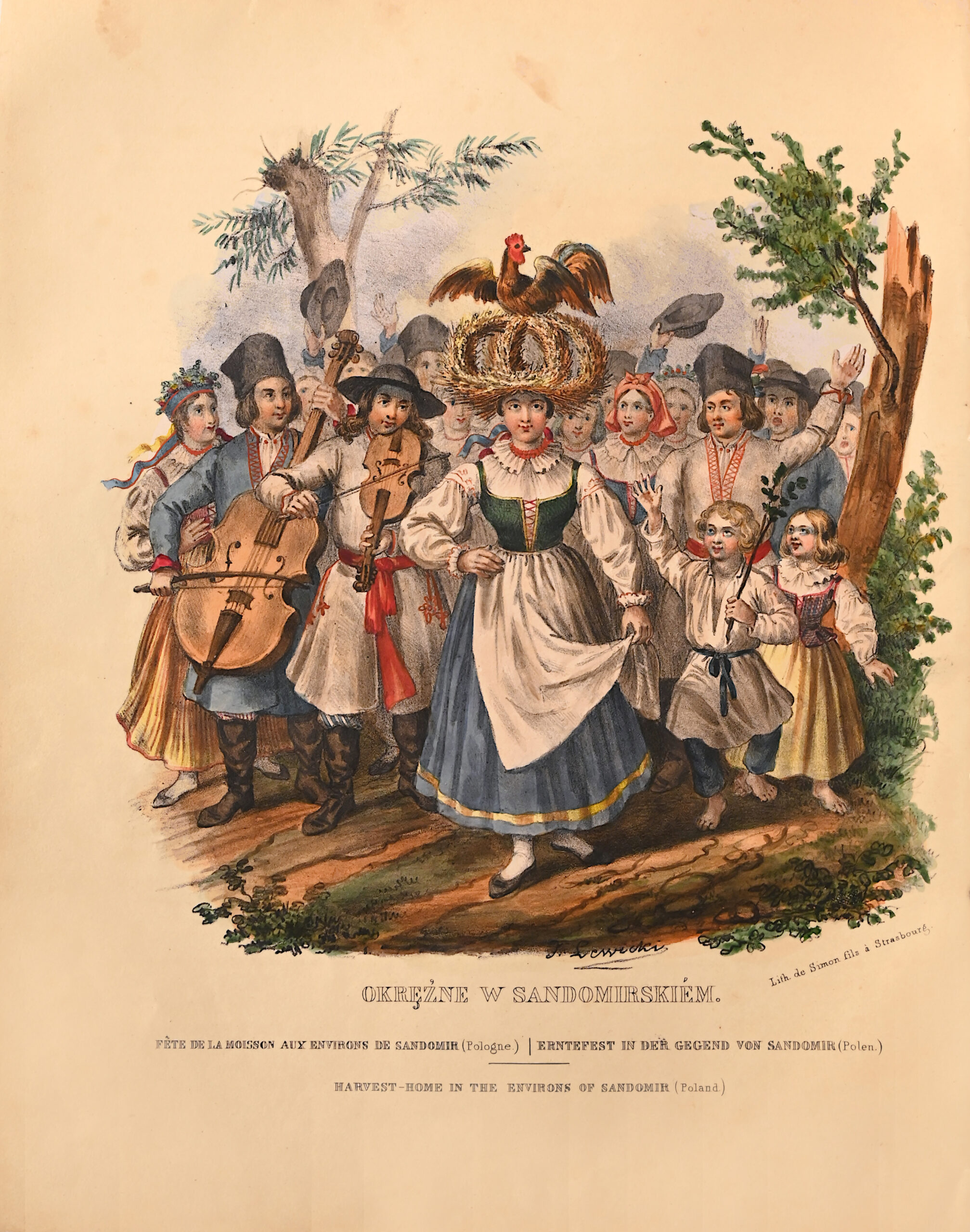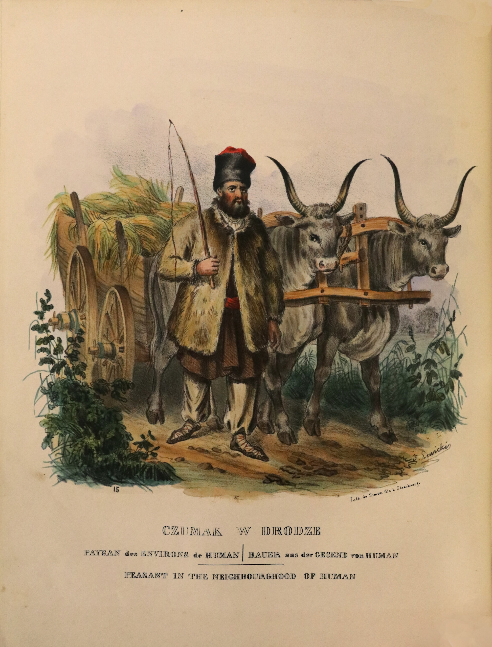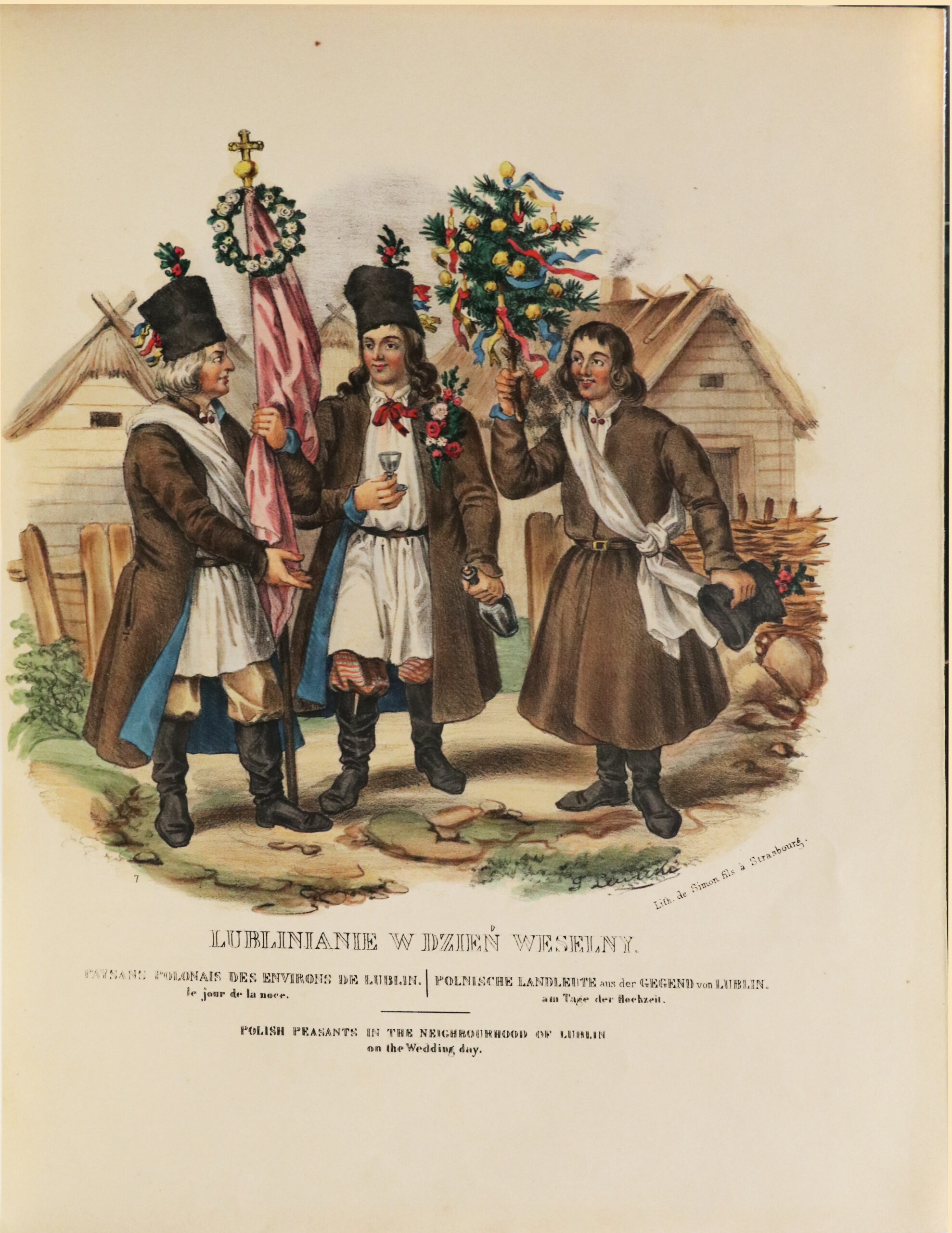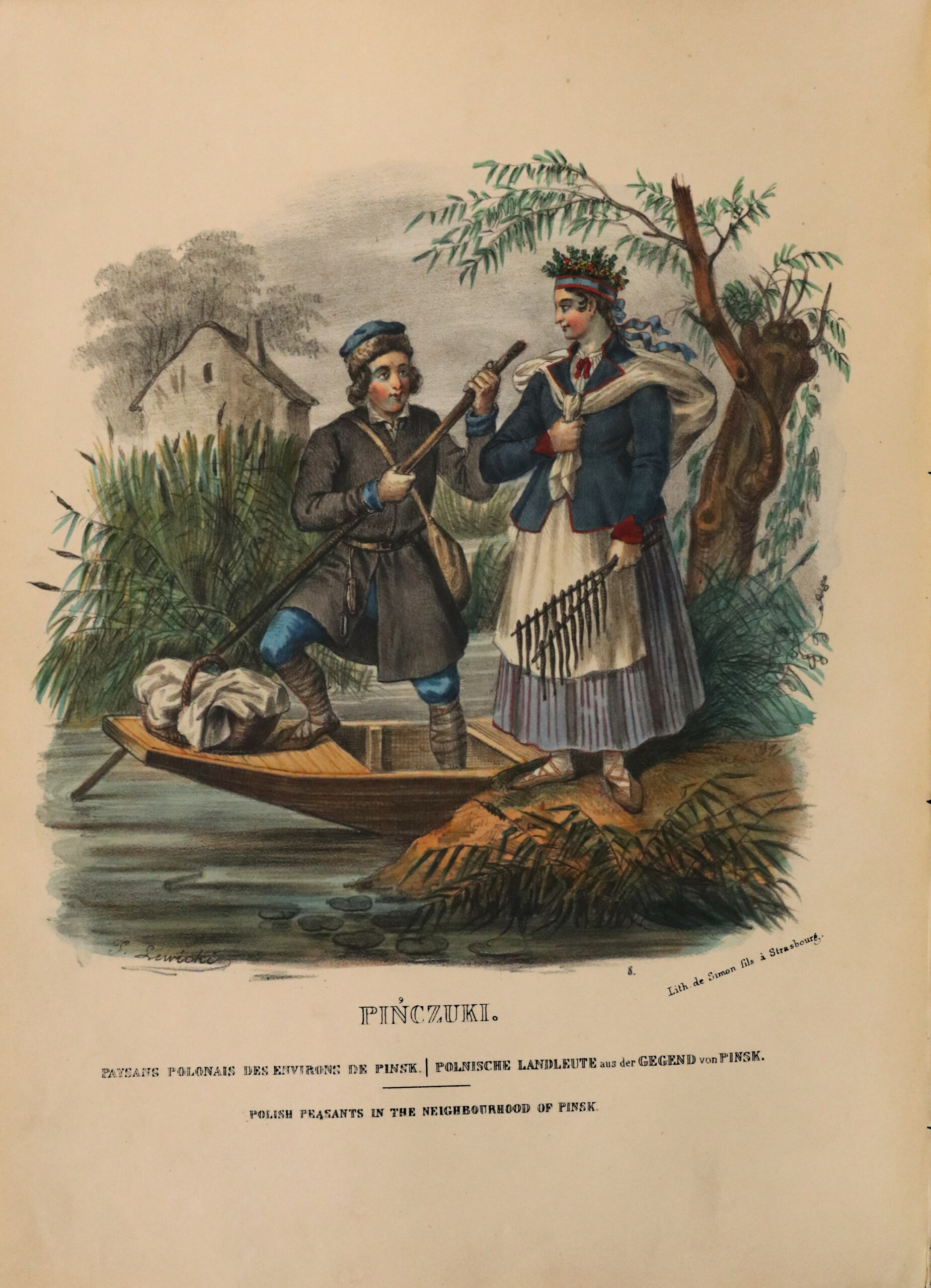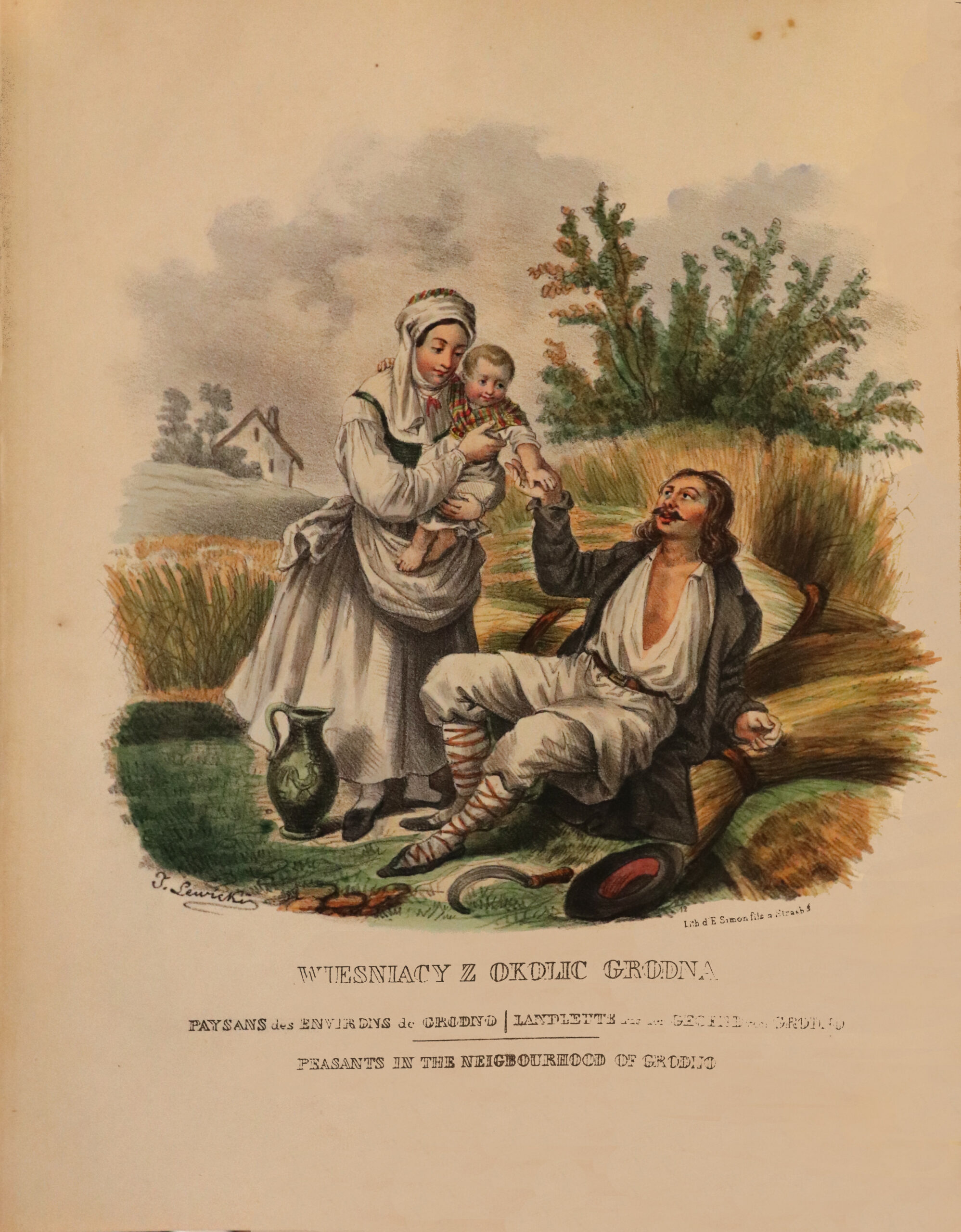 Die Illustration besteht aus 39 fein aquarellierten und zur damaligen Zeit gummierten Kostüm- und Genretableaus von J. Lewicki und A. Wittmann: Bergbewohner aus der Umgebung von Kolomya, Bauern aus der Umgebung von Wilno, Bettler aus der Umgebung von Kijow, Bäuerinnen aus der Umgebung von Jaroslaw… Die Illustrationen zeigen Volksszenen aus Polen und Regionen, die sich heute in Weißrussland, Litauen und der Ukraine befinden. Die letzten sechs Tafeln zeigen Militäruniformen.