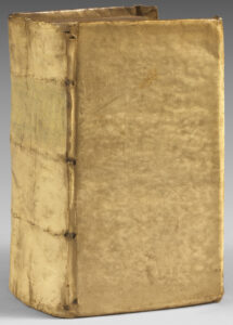 In-12 von (12) ff., 528. Steifer Pergament-Einband mit Überzügen, glatter Rücken, rote Schnittkanten. Einband der Zeit.