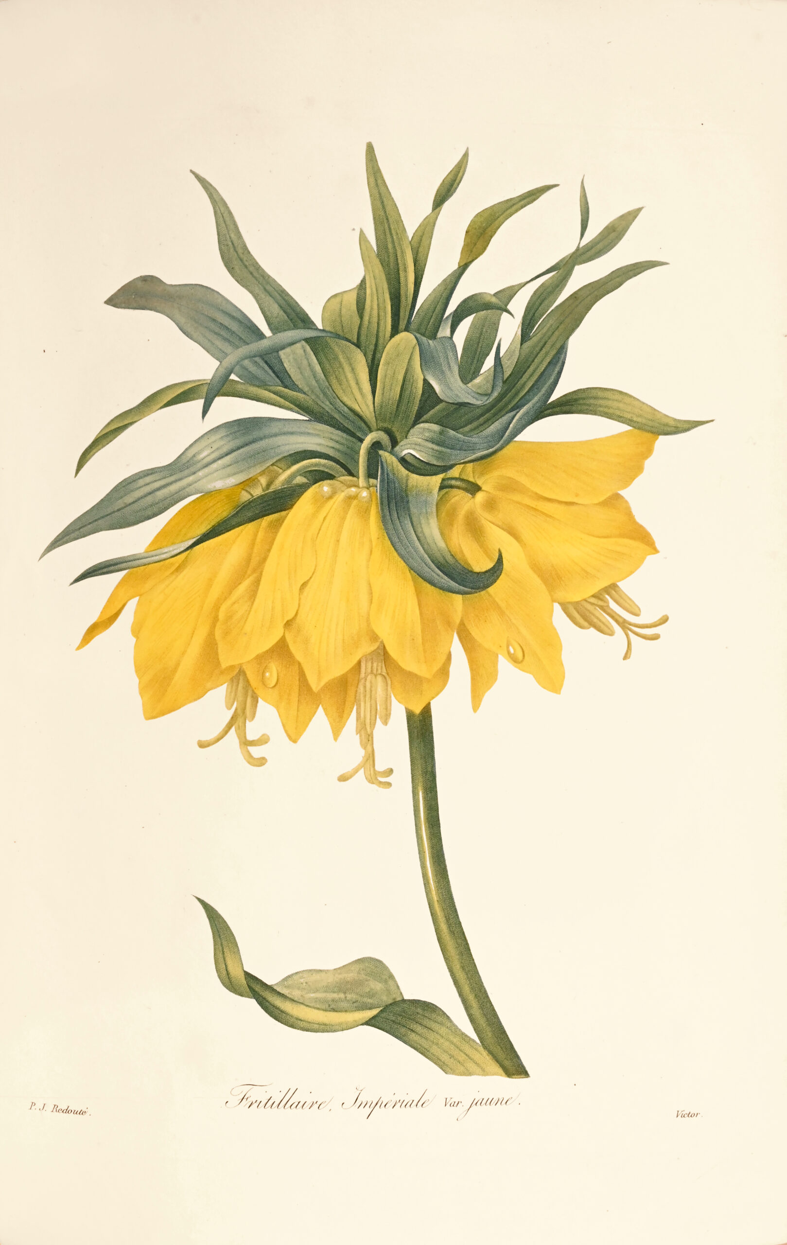 While exhibiting his artistic abilities to the full, it shows the license that came to the fore at the end of Redouté’s career as he had to cater to the tastes of the boudoir and drawing room. “The préface to the book is Redouté’s artistic testament. In it, he looks back at his life, reviews his successes, and the role of botanical illustration in his world, observing « The art of painting flowers is certainly not a luxury and the adornment which luxury derives from it cannot detract from the correct opinion that one must have of its utility. Natural history could not exist if deprived from its help, certainly in our age….” (Stafleu).