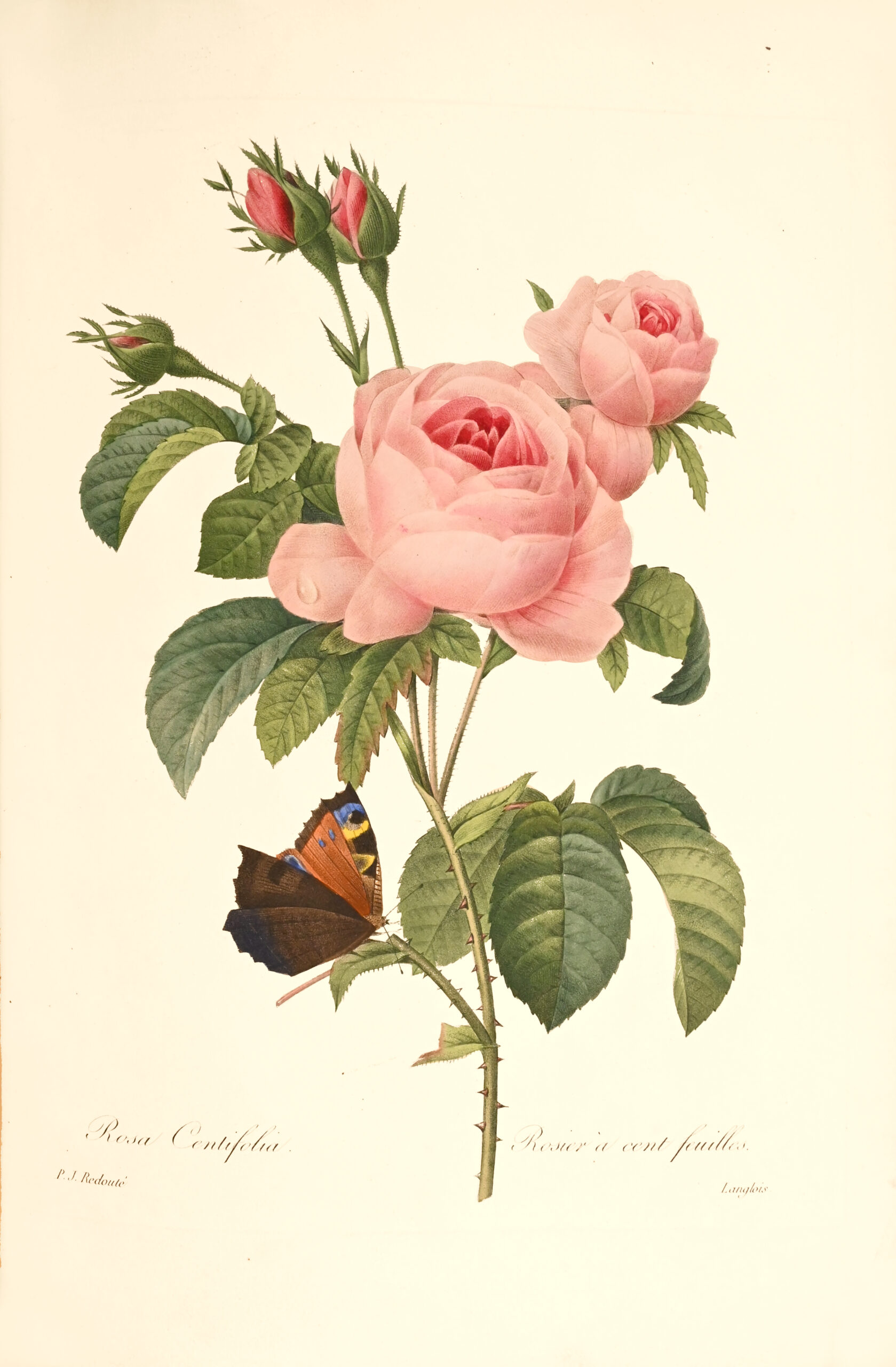 In 1822, Louis XVIII appointed him professor of plant iconography at the king’s garden, replacing Van Spaendonck. From 1827 to 1833, Redouté completed with happiness and talent an immense work whose title alone indicates its character and value; it is the “Choice of the most beautiful flowers taken from different families of the vegetable kingdom, of some branches of the most beautiful fruits, sometimes grouped and often animated by insects and butterflies”. The enormous success of this publication, whose editions were quickly exhausted, decided the author to publish, as early as 1835, the “Collection de jolies petites fleurs choisies parmi les plus gracieuses productions de ce genre, tant en Europe que dans les autres parties du monde”.