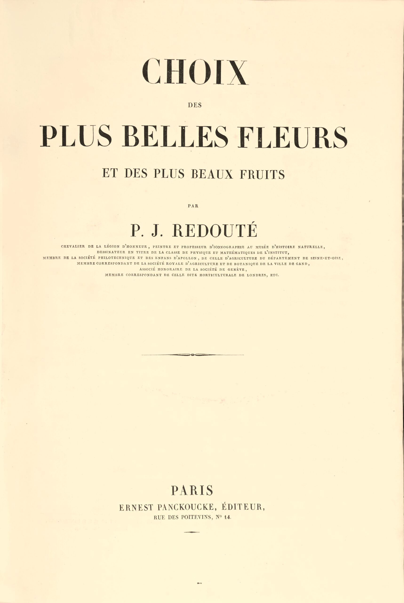 In 1792, Redouté was appointed draughtsman of the Academy of Sciences, and the same title was confirmed to him at the foundation of the Institute. To the magic of the color and the drawing, he knew how to join a knowledge of naturalist that Van Huysum did not even suspect; these plants, these flowers, of which he made with his palette of delicate wonders, he knew them as well as Linnaeus; the painter in him doubled of a scholar and a deep observer.