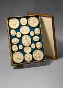 Rome was the ultimate destination, and a visit to the treasures in its many museums completed a young man’s education. The collection of boxes containing plaster molds of classical works of art was a fashionable pastime and a valuable ‘memory aid’ for the mythologies, gods, and historical events represented on the delicate cameos.
