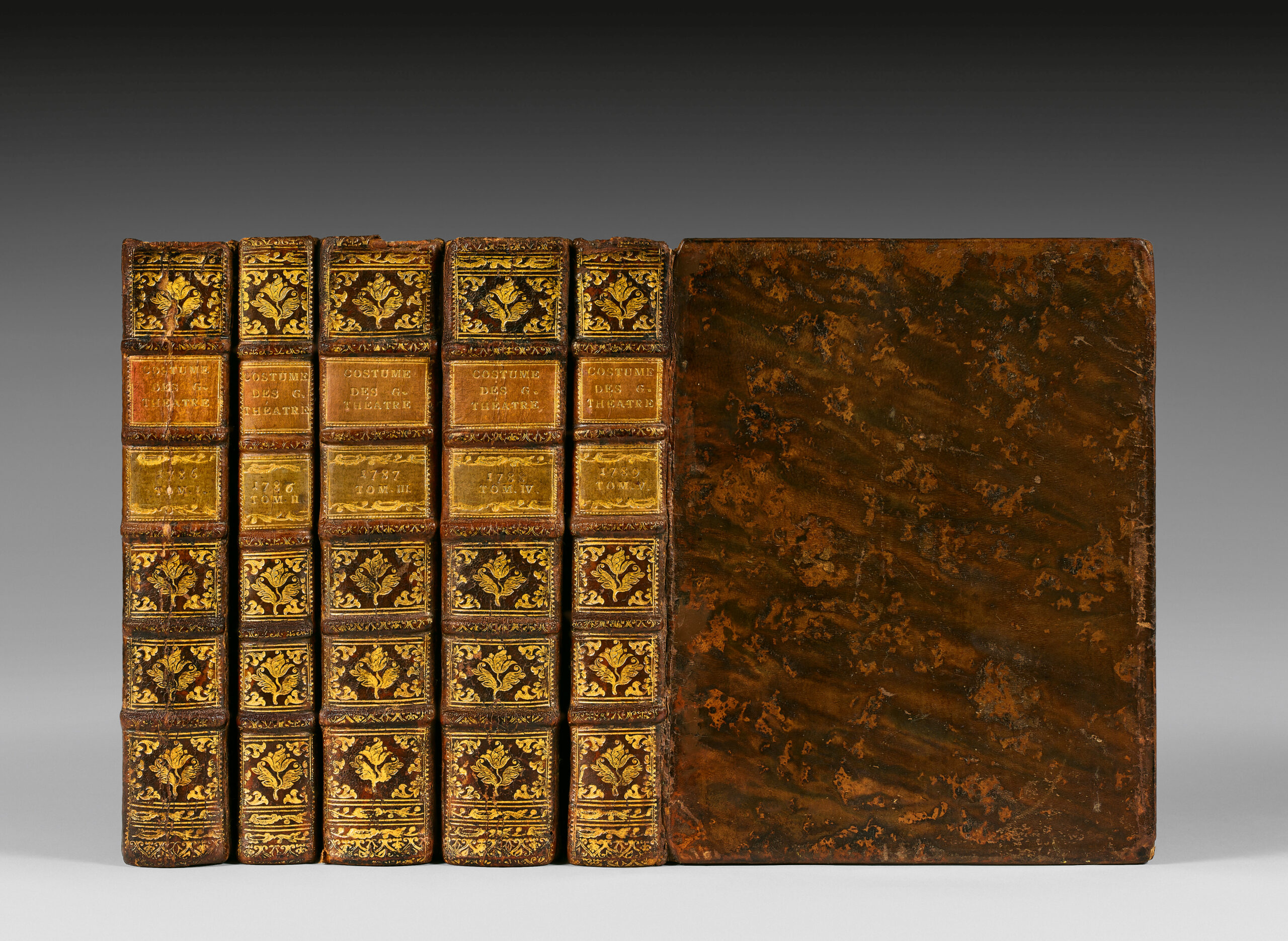 First edition illustrated with 179 engravings including 177 of 18th century theater costumes, with 146 in contemporary colors.
