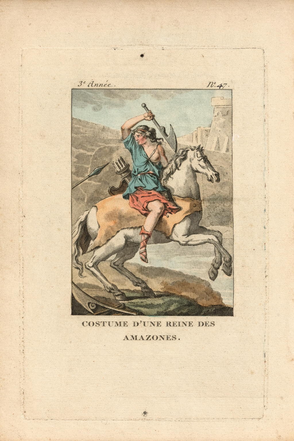 Periodic publication with 48 issues per year, as stated in the prospectus, with 24 colored figures, 24 engravings after the antique, and 36 music plates, priced at 30 livres (the first three years had 48 issues and the fourth 33 only).
