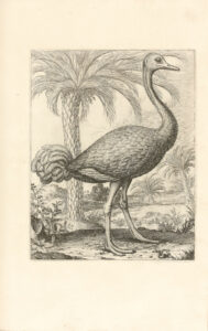 The birds are designated in the engraving by their Latin and French names: eagle, vulture, owl, swan, wild goose, gull, crane, heron, stork, ostrich, chicken, turkey, parrot, pigeon…