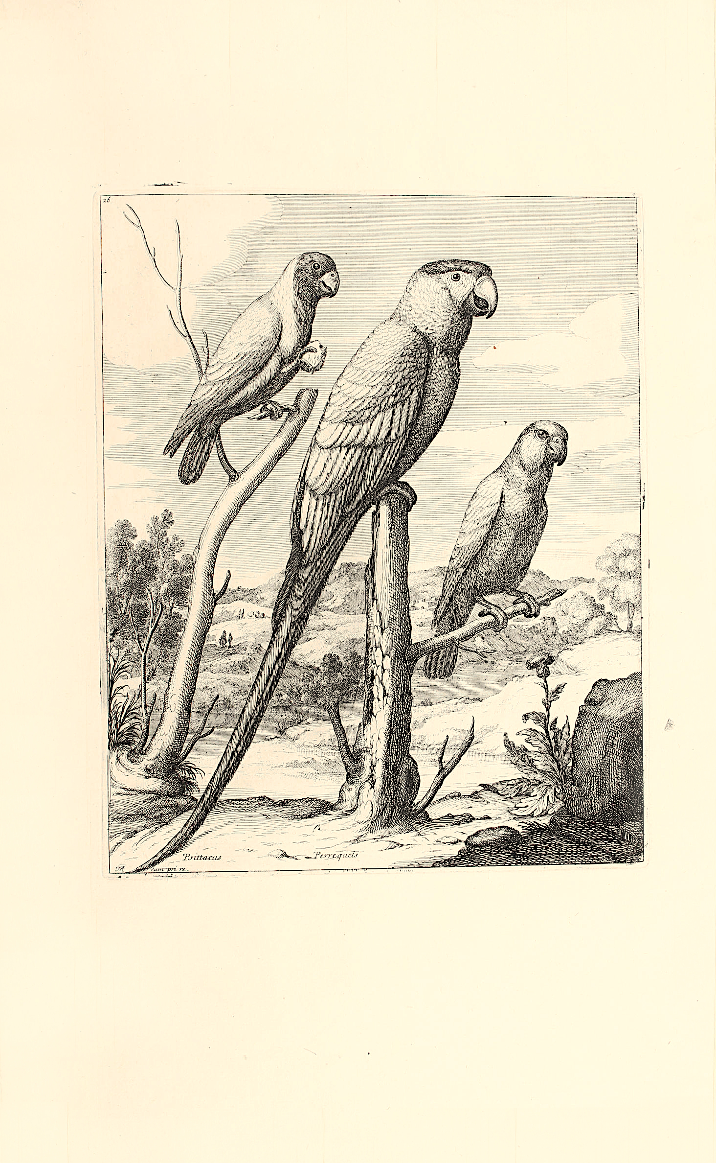 From 1666, as part of his role as “Peintre ordinaire du Roi pour la miniature,” Robert was required to provide a minimum of 54 original watercolors on vellum of natural history per year. He drew his ornithological subjects primarily from the Menagerie de Versailles, but did not work exclusively for the king.