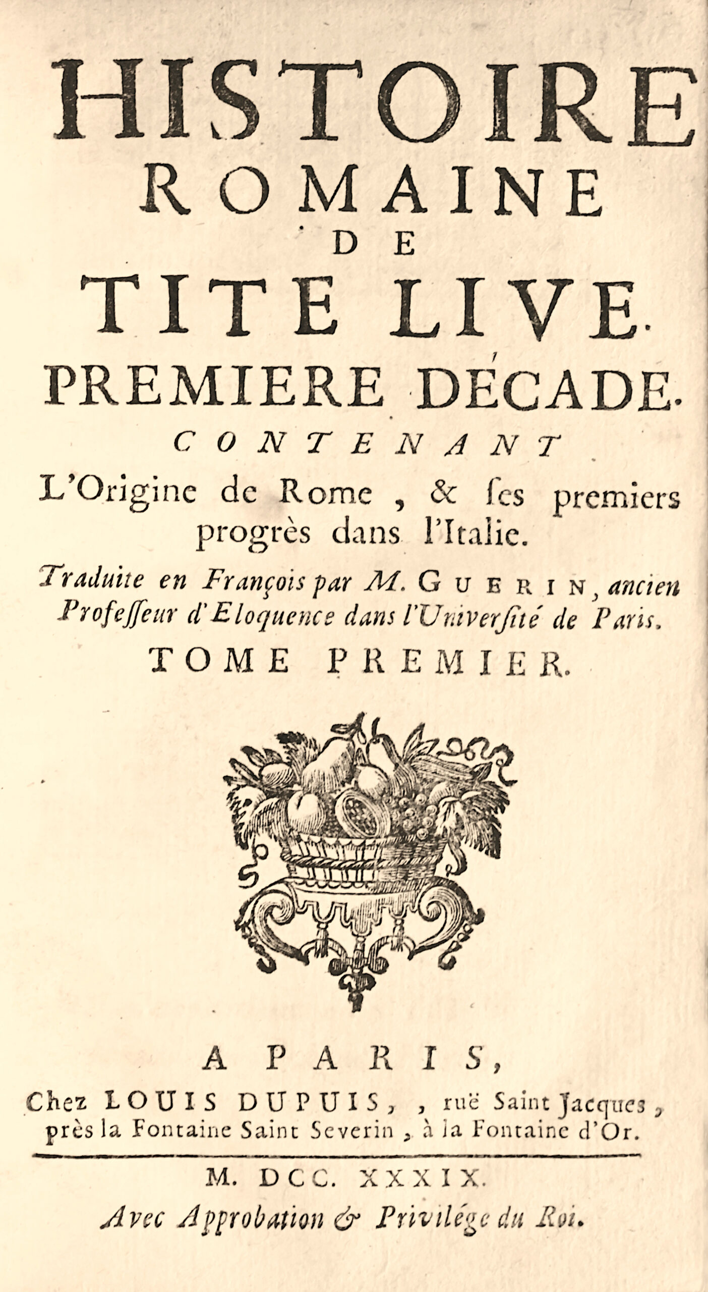 “On the day after the Battle of Actium, which brought back peace and concord to the Roman Empire after a century of civil wars, Tite-Live (69 BC – AD 17) set out to narrate the history of Rome in a work that, through the breadth of its design, the elevation of its inspiration, and the nobility of its form, might be worthy of the grandeur of its subject—something that could not be said of the narrations of the various annalists of the era of Cicéron.