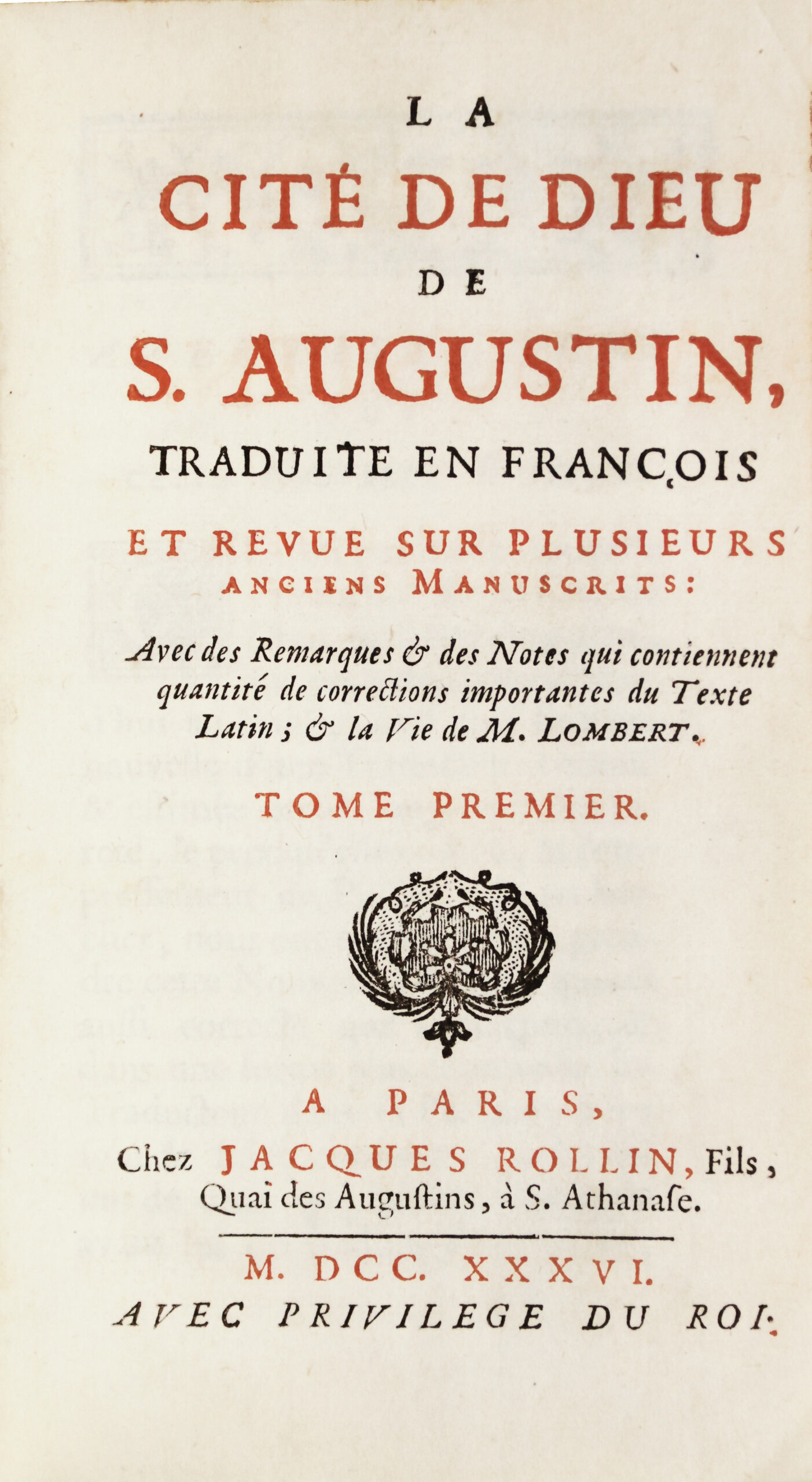 This was the first book printed in Italy (1467, in Subiaco) and we know how deeply humanism was charmed by it, as were the Reformers, Pascal, and Kierkegaard.