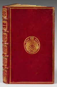 8vo of (4) ll. and 131 pp. Full red morocco, triple gilt fillet around the boards, arms at the center, finely ornamented raised-band spine, decorated edges, inner dentelle, gilt edges over marbling. Contemporary armorial morocco binding.
