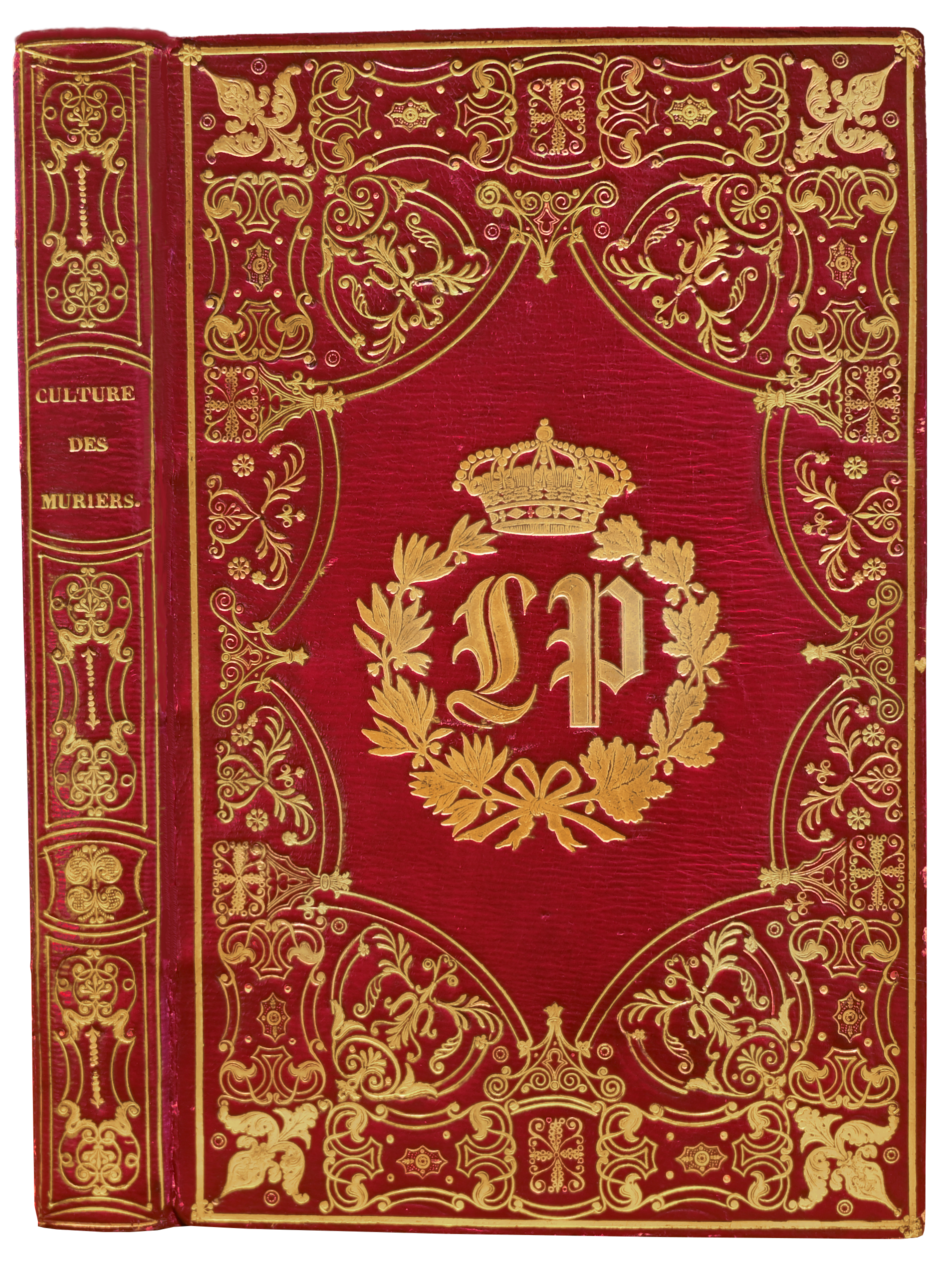 서문의 편집자 카미유 보베즈는 자신이 두 개의 중국 방법을 사용하여 누에 사육을 실천하고 있으며, 이를 통해 프랑스 방법보다 더 만족스러운 결과를 얻을 수 있다고 강조했습니다.» (모 치안후이).왕 루이 필립을 위해 대형 백색지에 특별히 인쇄하고 붉은 가죽으로 제본된 화려한 프리젠테이션 예제입니다.«루이 필립은 태어났을 때 발루아 공작의 칭호를 받았고 1785년에 이를 샤르트르 공작의 칭호로 바꾸었으며 1793년에 오를레앙 공작의 칭호로 바꾸었습니다. 새로운 사상에 물든 그는 혁명 시대의 파리에서 인기를 얻었습니다. 그는 유럽과 아메리카를 많이 여행했습니다. 그는 1830년 8월 7일에 루이 필립 1세의 이름을 받아 왕위를 수락하였습니다. 매우 지적이며 항상 장관들을 통해 통치하려 했습니다. 매우 교양적이고 예술에 조예가 깊었던 루이 필립은 책의 질로 유명한 두 개의 도서관을 소유하고 있었습니다.» (올리비에 에르말, pl. 2499).