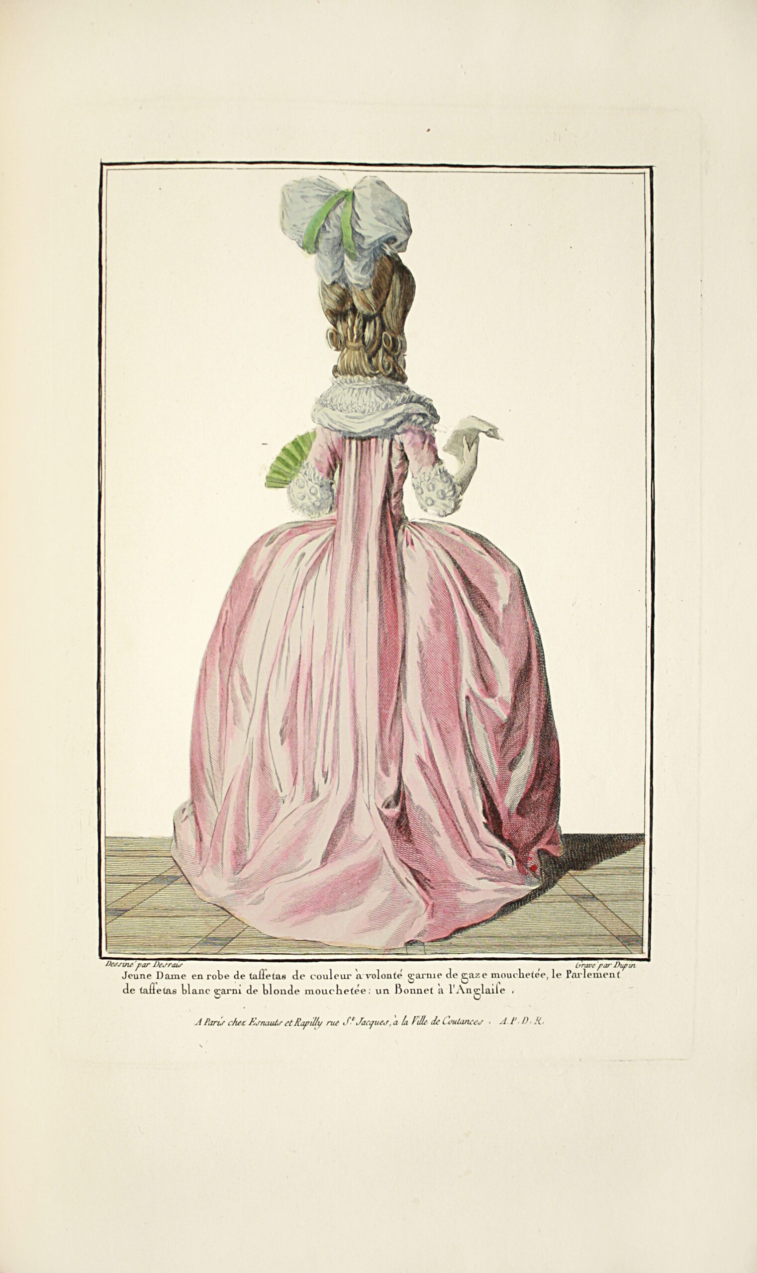 « Le plus beau, le plus varié et le plus précieux recueil de gravures de mode du XVIIIe siècle. Publié périodiquement par cahiers de 3 ou 6 feuillets, cet ensemble n’est jamais complet », écrivaient les experts de la librairie Giraud-Baudin dans un ancien catalogue à propos d’un exemplaire recomposé en reliure moderne.