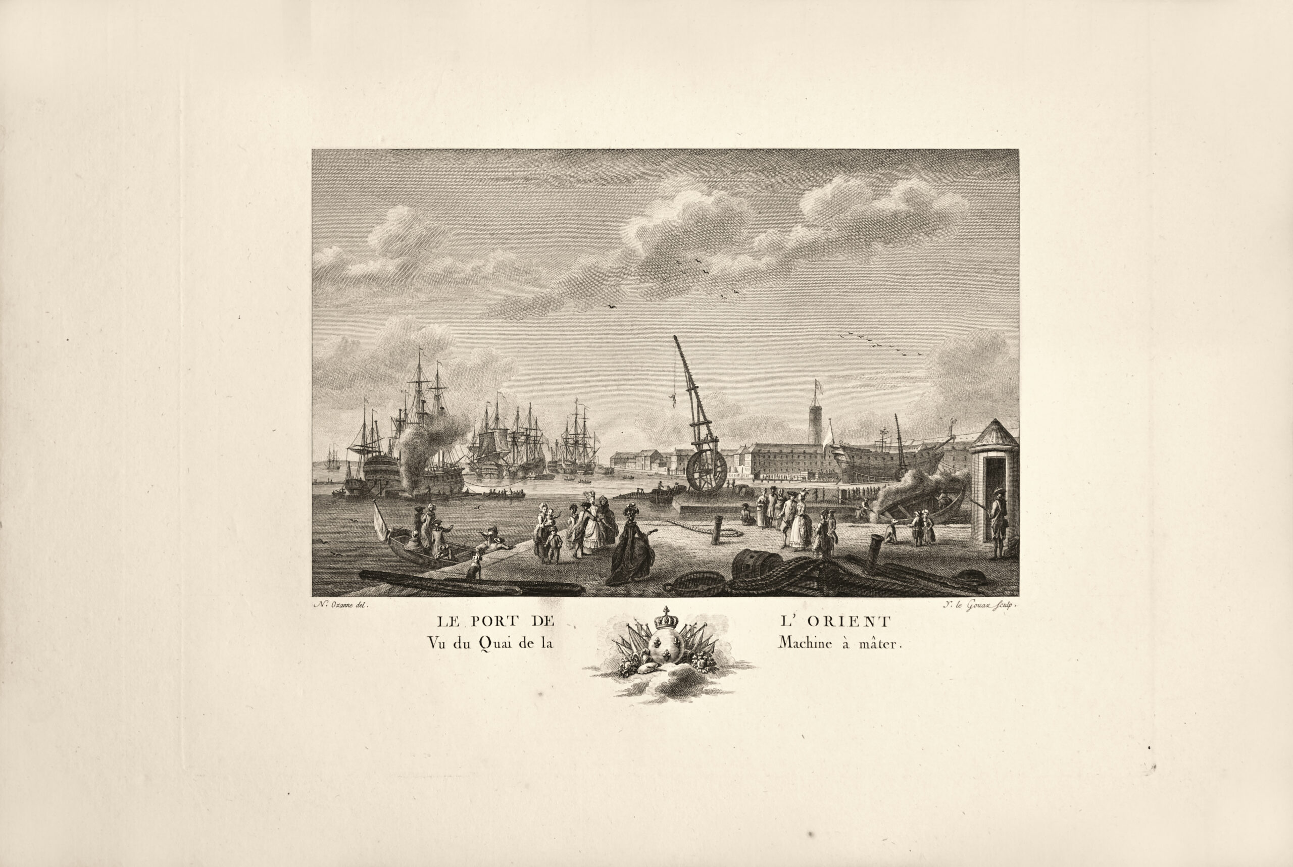 尼古拉斯-玛丽·奥赞(1728-1811)在巴黎跟随纳图尔和布歇学习绘画。1750年他成为布雷斯特港口“护卫亭及海军”的绘画教师。1751年,他来到巴黎,为路易十五访问勒阿弗尔港口的庆祝活动绘制图纸。1762年,他获得了海军绘图员的证书。1769年,他负责教授太子的女儿们船只的建造和操作。