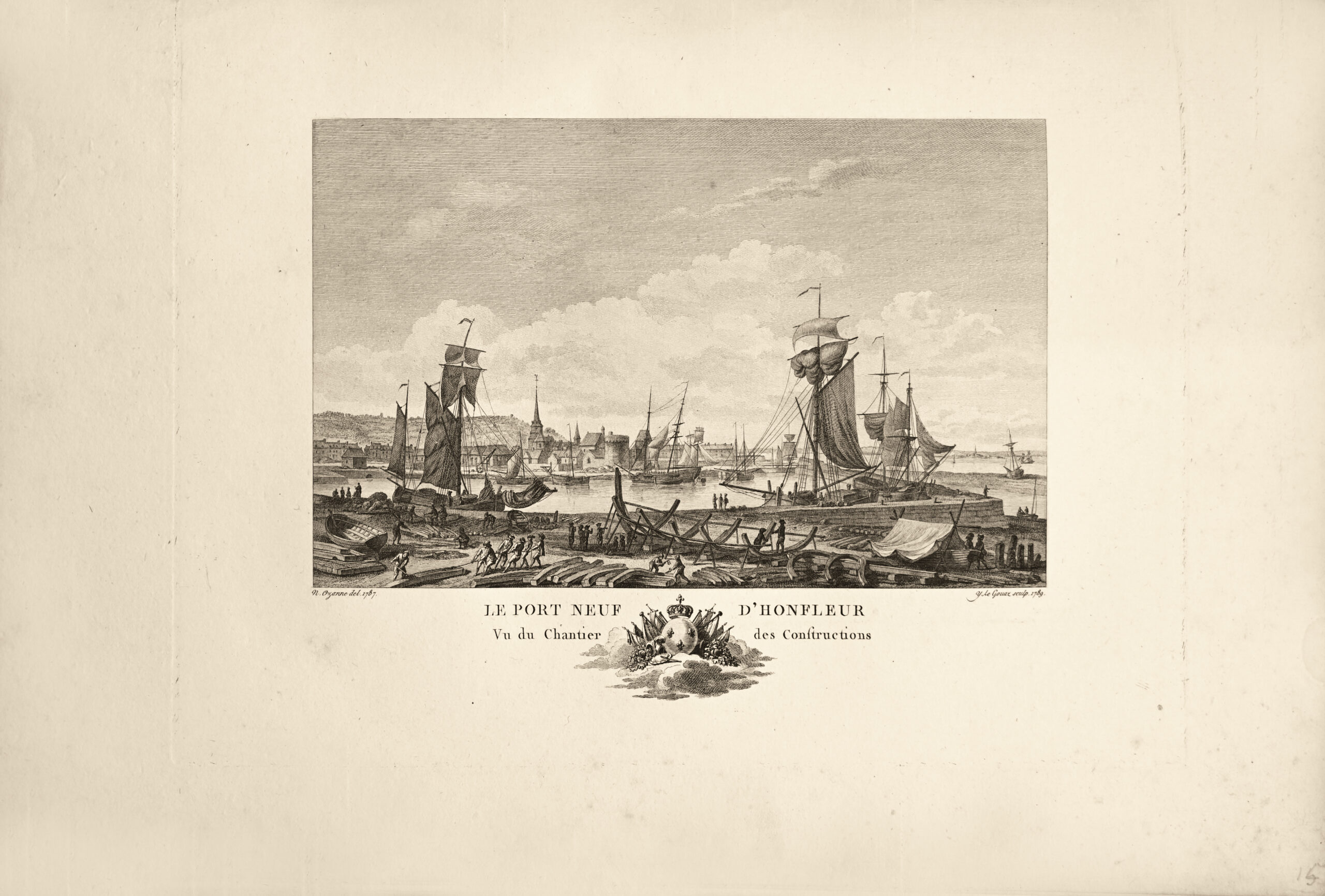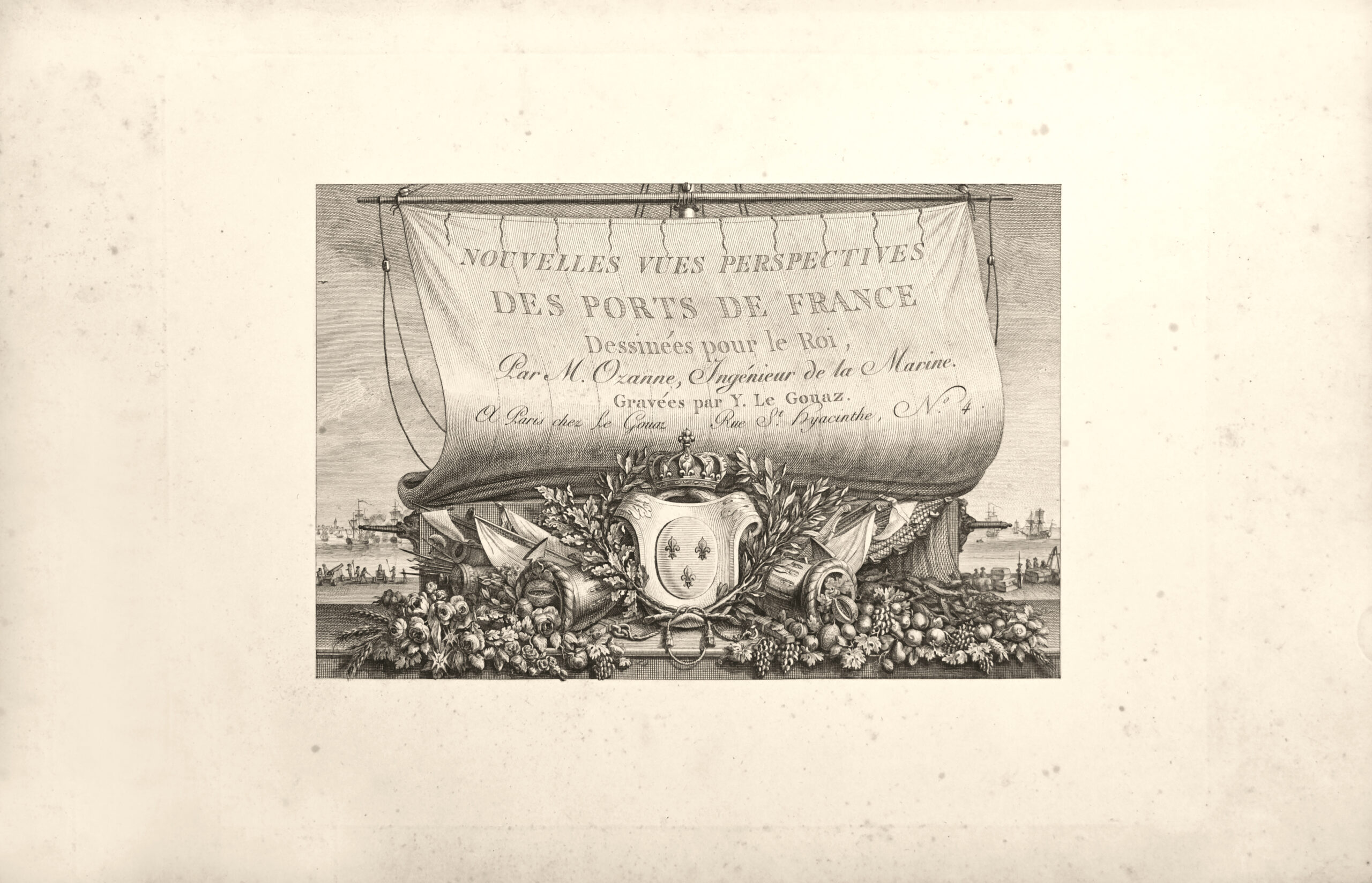 这个集子包括一个雕刻的标题、一幅地图和60幅出自Ozanne长兄的精美初版版画,内容为“法国港口的透视图”。