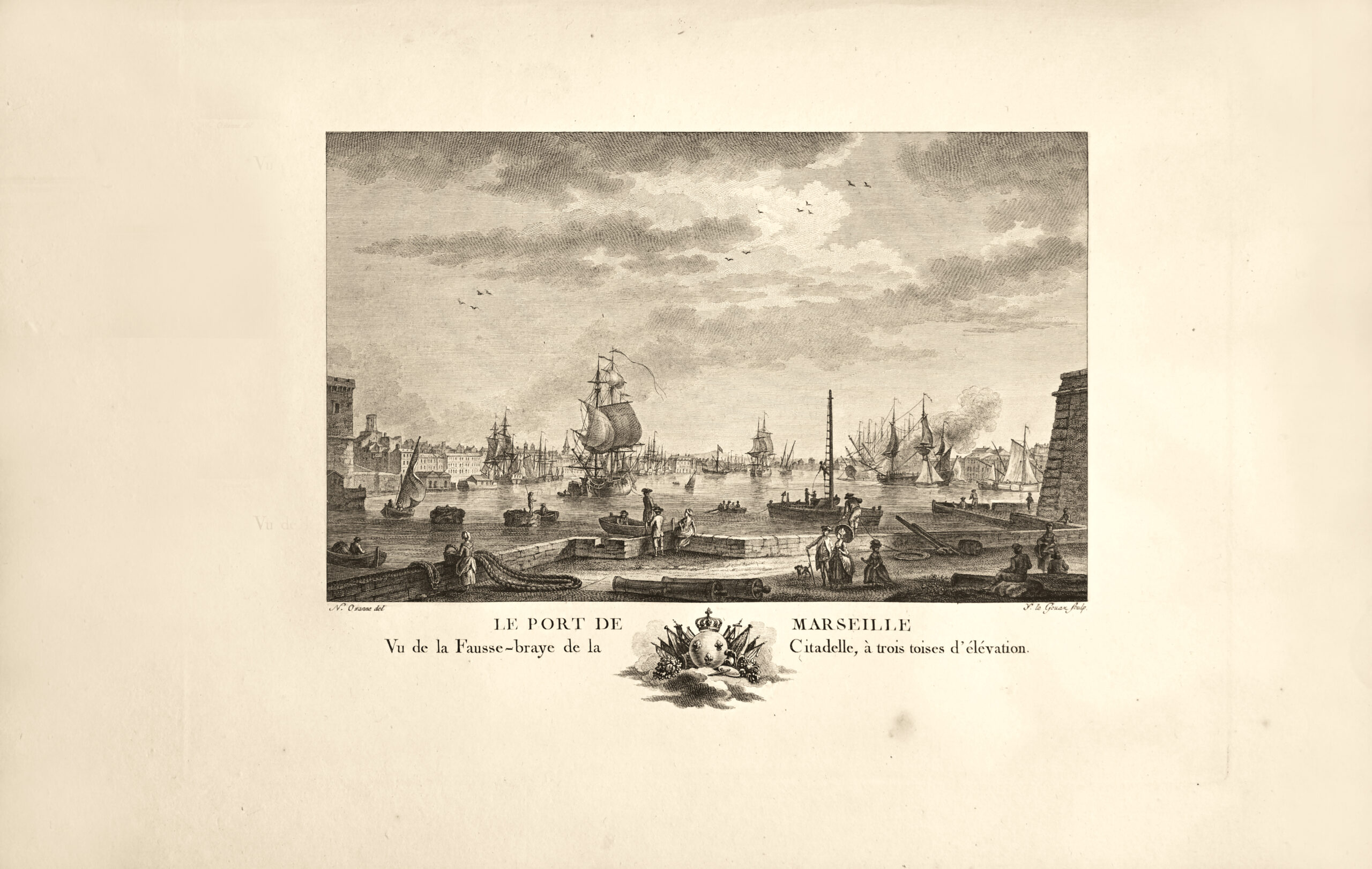 这本非凡的集子因此呈现出78幅精美的初版版画(约350 x 205毫米),它们是对路易十六统治时期法国港口生动画面的精致再现: